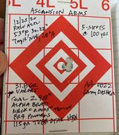 This hunting rifle was test fired at Ascension Arms range on May 26. It shoots very tight groups at 100 and 200 yards. Shoots 2" group at 300 yards with 4x scope.